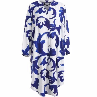 klänning/ storskjorta från Gozzip I lager. 1 199 kr storlek 36 38/40 42/44 46/48 50/52 Lägg i korgen Antal: knappar fram , resår i ärmslutetfickor i sidorna, ursnygg blå färg, rundad hals med nätt ståkrage83%viskos 17% nylon, längd ca 106 cm i xxs