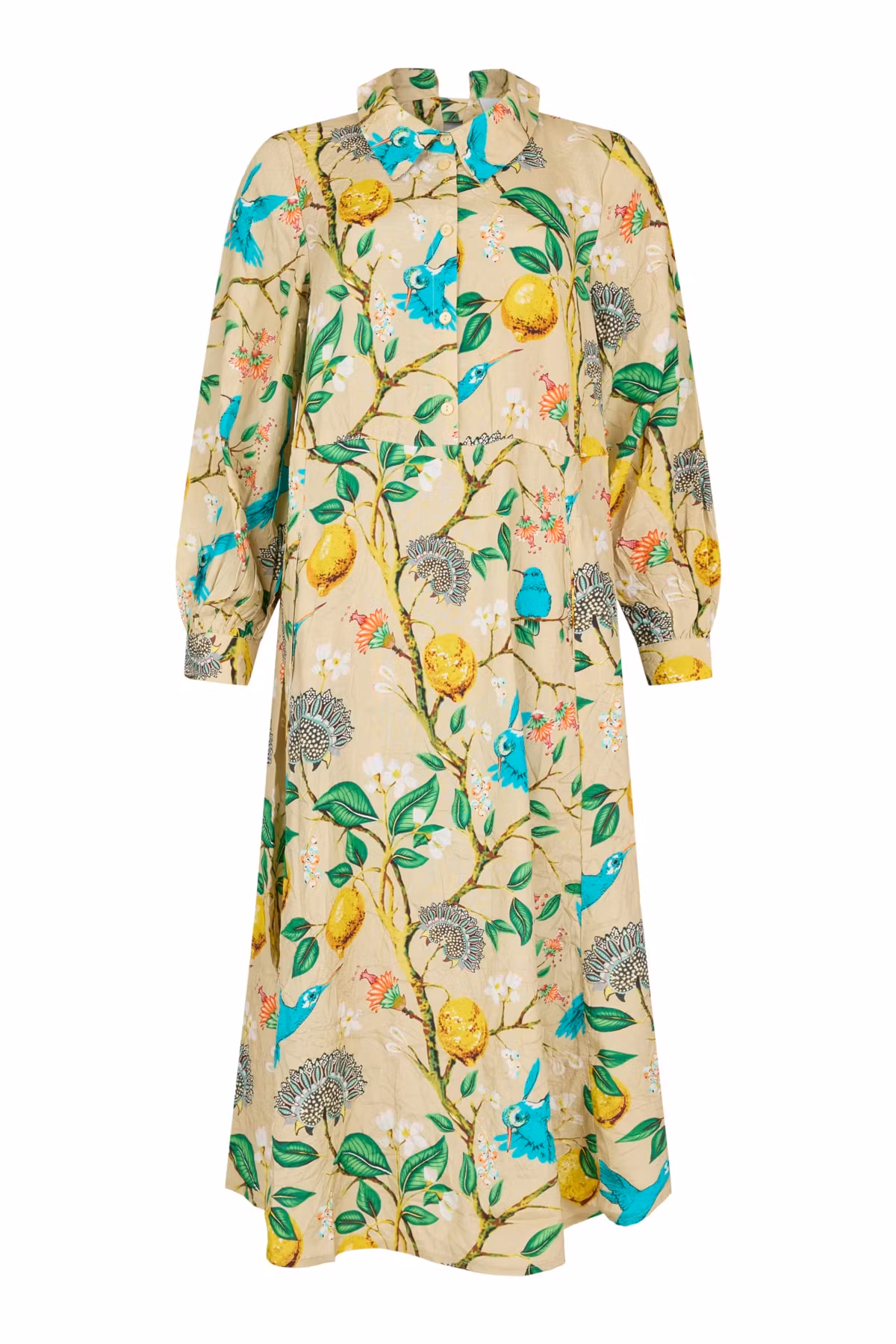mönstrad viskosklänning från Noen I lager. 1 499 kr storlek 38 40 42 44 46 48 50 Lägg i korgen Antal: jättesnygg modell, manchett m knapp i ärmslut, fickor, knappar fram, skjortkrage men med ett mellanrum i nacken, ballongärm avdelad och ger en nätt silluette100% viskos, krinkladtvättråd 30 grader längd i stl 38 = 126 cm