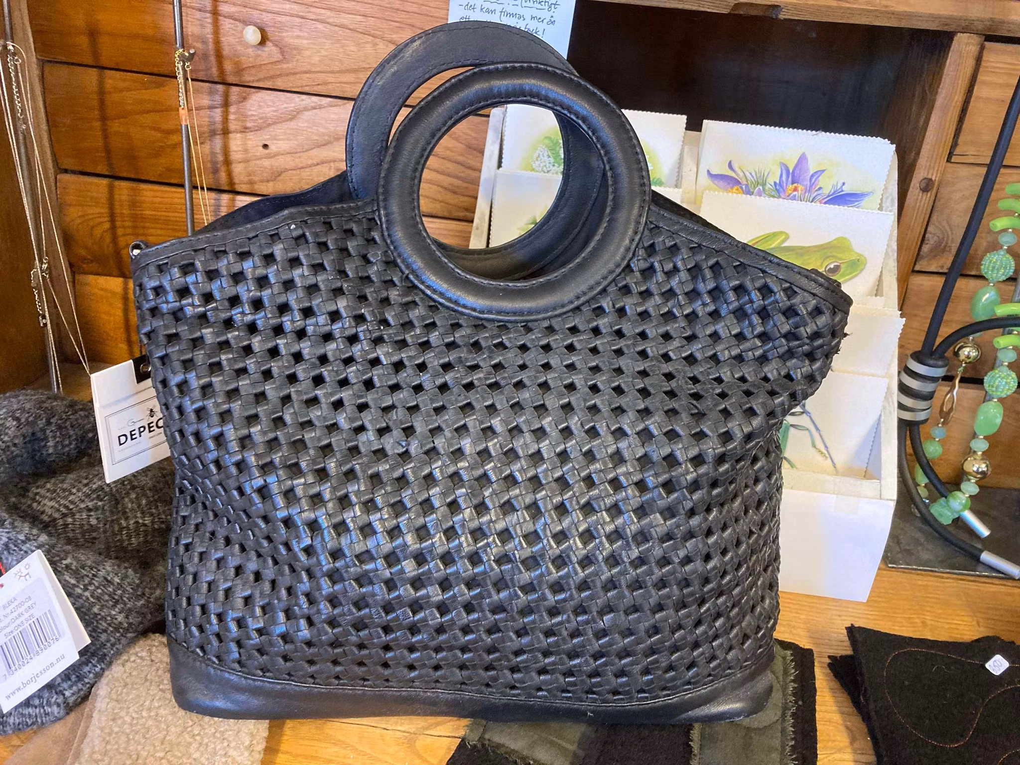 svart väska med flätrutor I lager. 1 999 kr färg svart Lägg i korgen Antal: svart väska med cirkelformat handtagmjukt skinnställbart axelrem medföljer. Slät på ena sidan och rutmönster på den ena sidan 40 cm bred10 cm djup30 cm höjd
