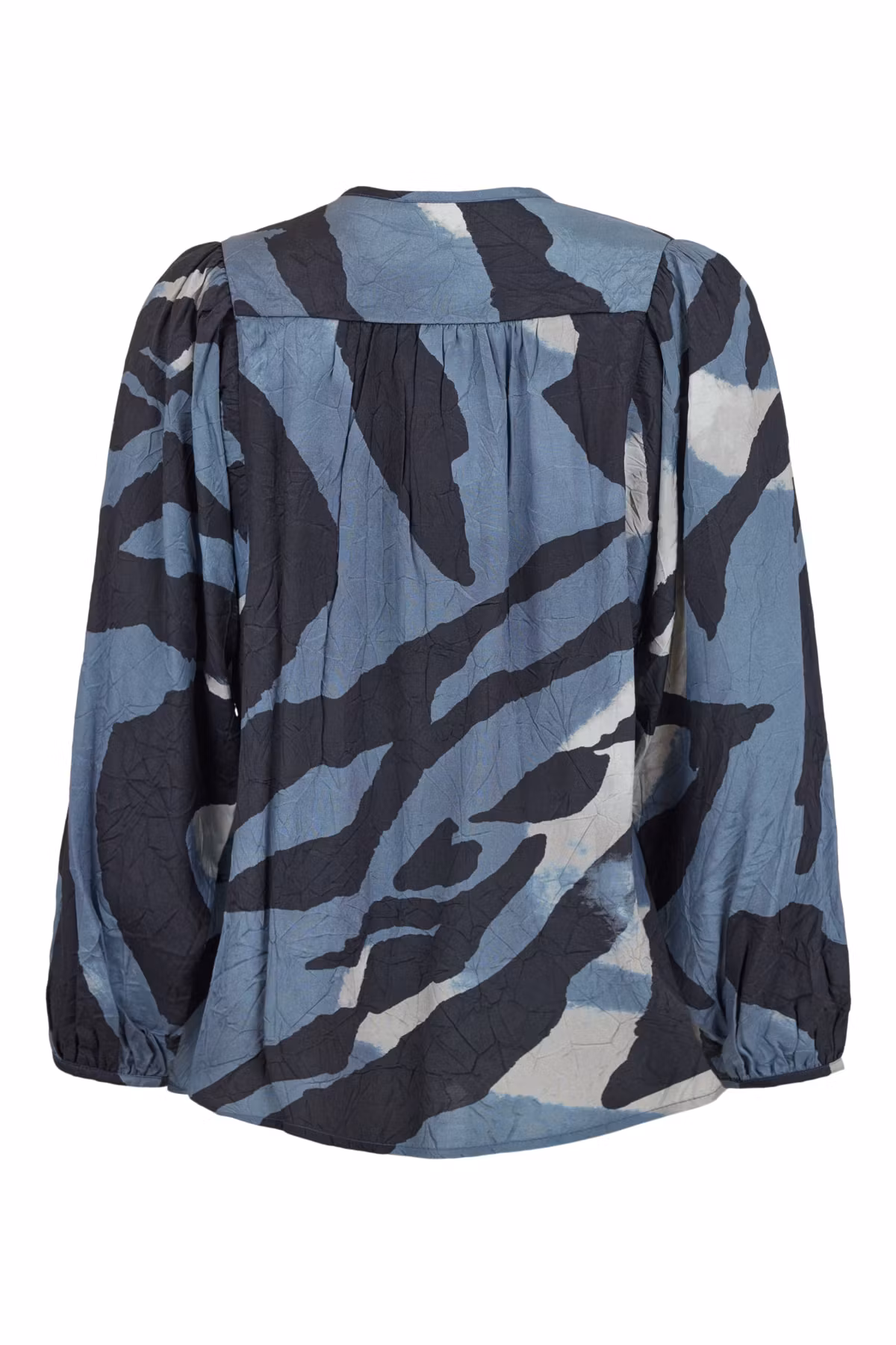 topp i 100 viskos från noen I lager. 1 199 kr storlek 36 38 40 42 44 46 48 Lägg i korgen Antal: blå, svart, blågråa toner. Snygg överdel i generös passform, rymlig ärm. Härlig krinklad viskos100% viskos tvättråd 30 graderett litet sprund med knapp i halsringning. Hopadragen i ärmens avslut